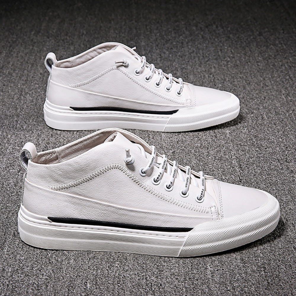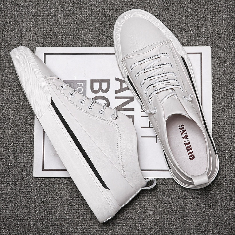 Men's Leather Board Shoes Trendy White Casual Shoes